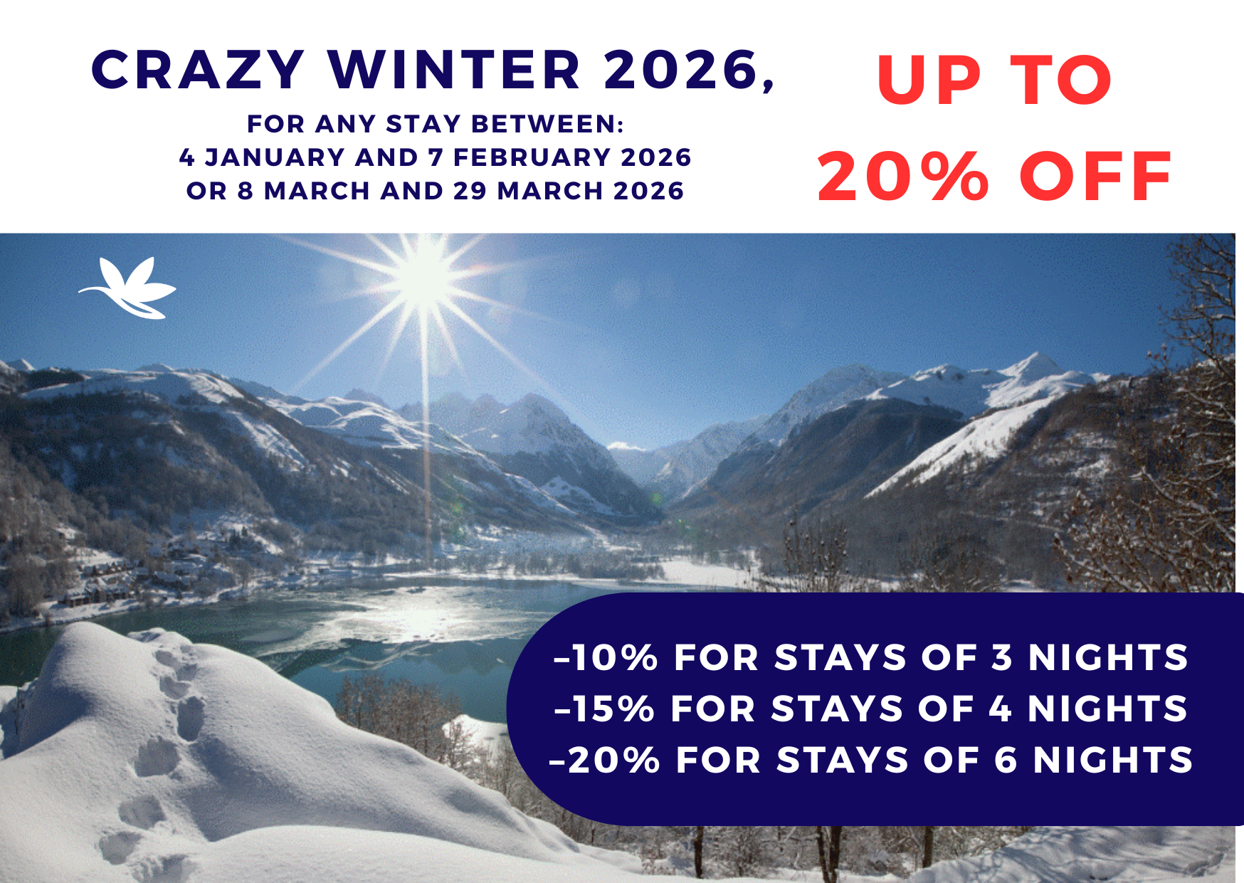 CRAZY WINTER 2026 Take advantage of exceptional offers for your winter holidays! Up to 20% off